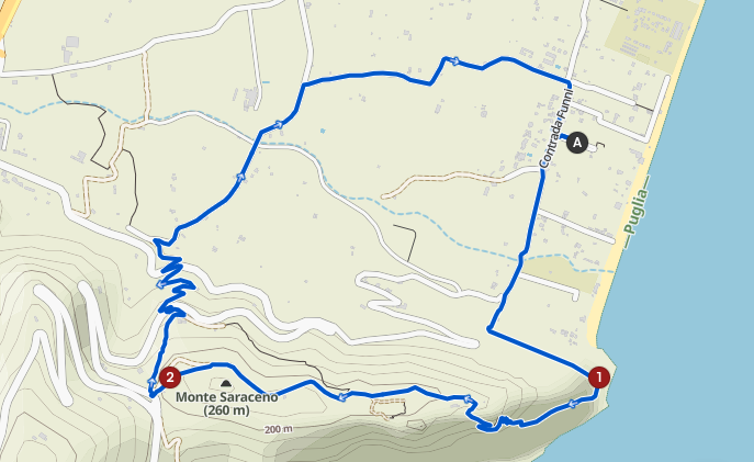 Un percorso che combina natura e storia, passando accanto alle tombe antiche dei Dauni e alla necropoli storica. Lungo il cammino, pannelli informativi raccontano la vita e le tradizioni del popolo antico. Il sentiero parte dal Lido Monte Saraceno e sale fino alla cima del monte, dove si trova la necropoli Dauna.